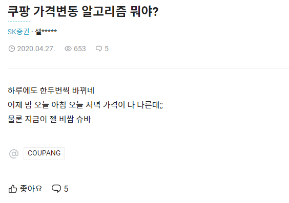 경쟁사 플랫폼 가격에 실시간으로 대응하는 내부 로직이 있는 것 같았다. 더 찾아보니 <쿠팡 AI가 물가 낮췄다?…인공지능끼리 `가격전쟁`>이런 기사도 있고