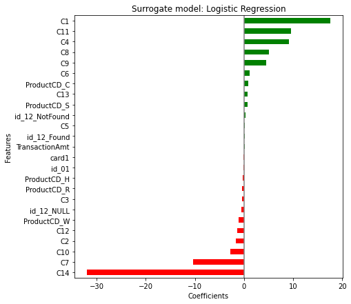 plt.title('Surrogate model: Logistic Regression')