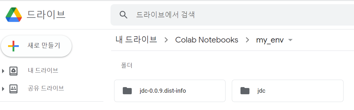 구글드라이브 Colab Notebooks에 my_env 폴더를 만들고 symlink를 설정한다. 여기서 MyDrive는 띄어쓰기 없이 사용해야한다. 참고한 블로그에서는 My Drive로 되어 있어서 처음 시도했을 때 에러가 발생했다.