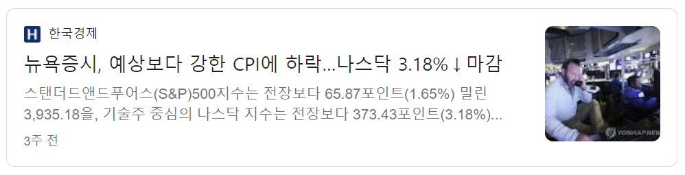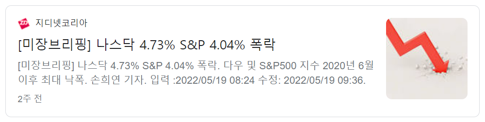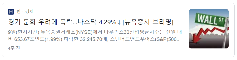 아래 기사들은 구글에 "S&P, 나스닥 하락"으로 검색했을 때 나오는 기사들이다. 물론 하락만 있었던 것은 아니고, 최근 한달 사이에 지수의 급격한 상승과 하락이 여러 번 반복되고 있다.