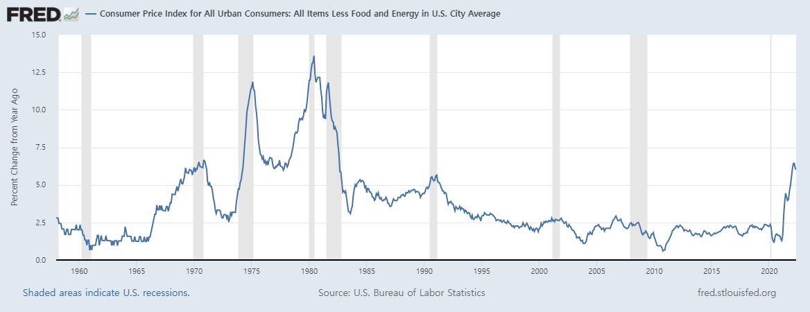 + CPILFESL: Consumer Price Index for All Urban Consumers: All Items Less Food and Energy in U.S. City Average (Core CPI)