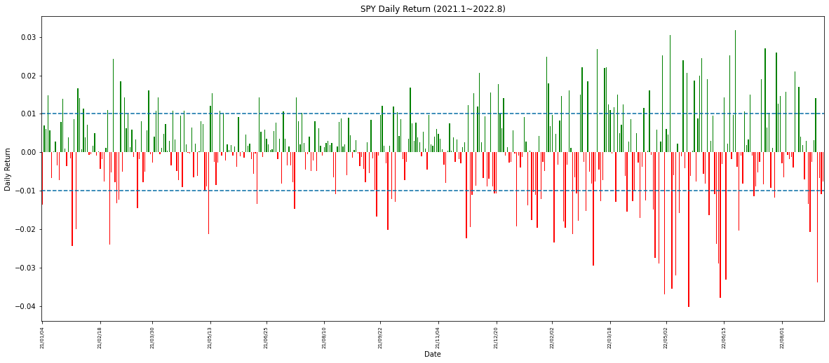 plt.title('SPY Daily Return (2021.1~2022.8)')