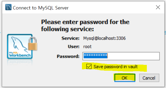 설치시 설정한 비밀번호를 입력하고, Save password in vault 버튼을 이용해서 저장한다.