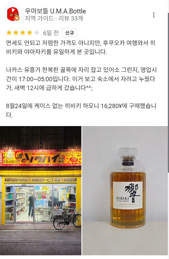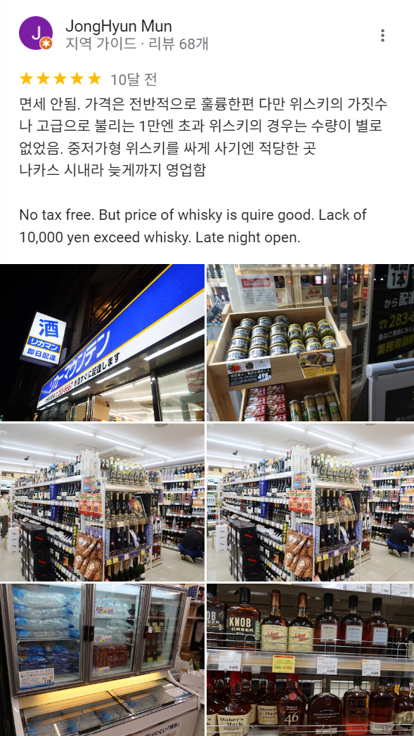 아마 한국인들에게 가장 유명한 후쿠오카 시내 리쿼샵이 아닐까 싶다. 유튜브에 검색해봐도 소개 영상이 여러개 있으니 참고 해볼만 하다.