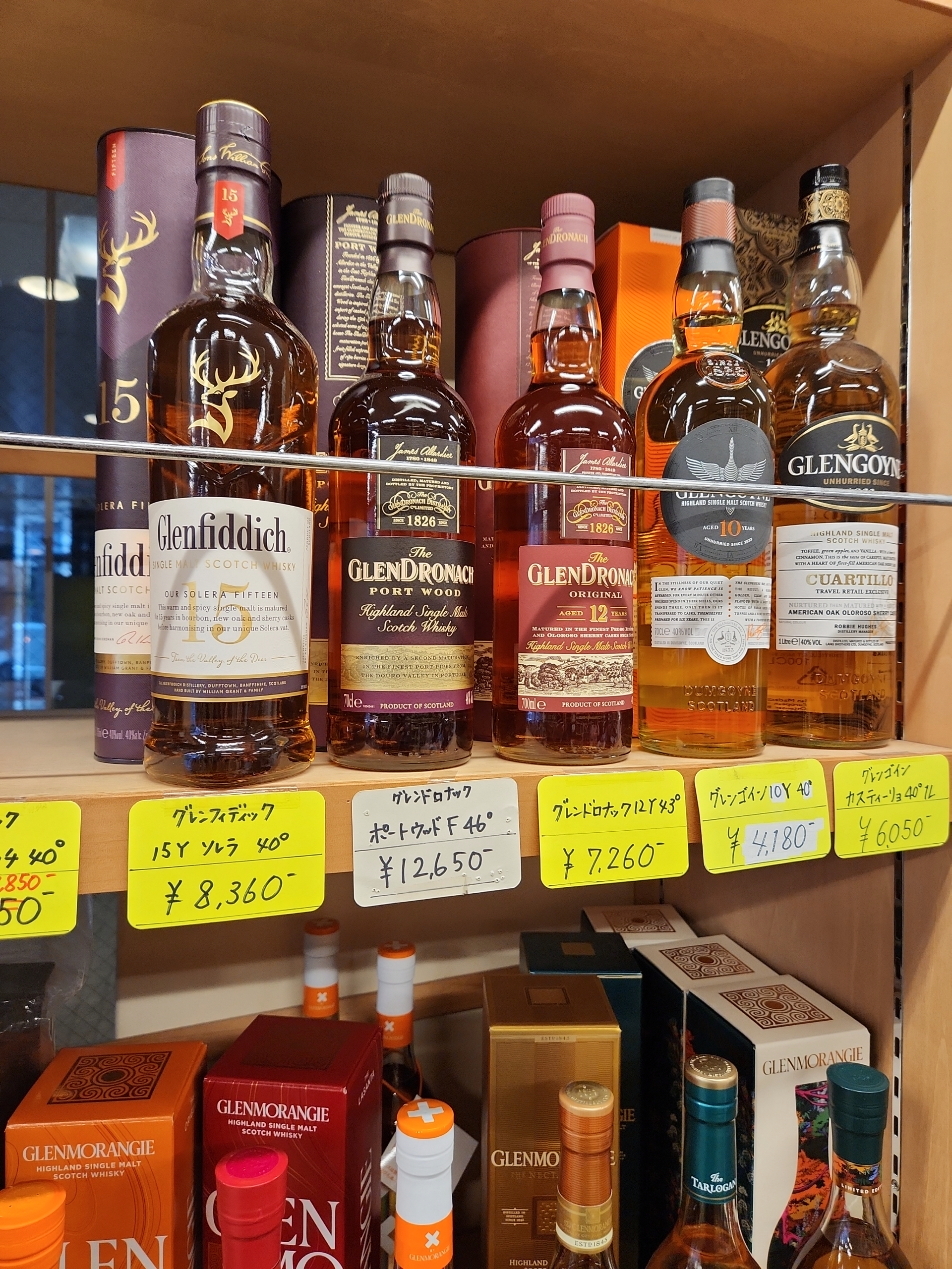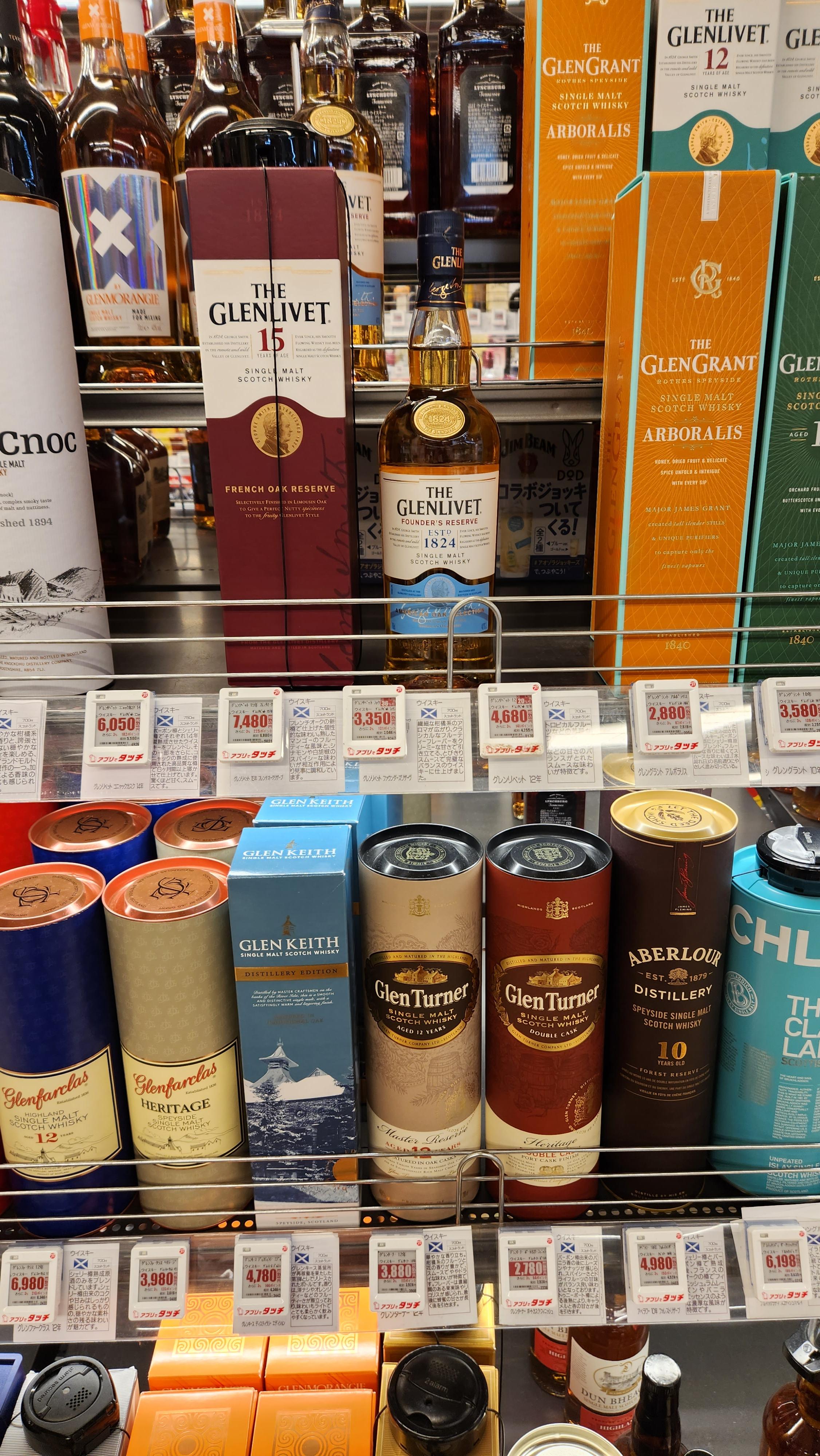 기념품 살 때 주류코너도 쓰윽 보고 지나가면 된다. 종류가 많지는 않았는데, 글렌그란트나 글렌리벳 가격을 보면 빅카메라 보다 저렴하긴 하다.