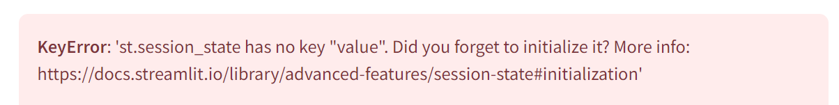 초기화되지 않은 변수에 액세스하면 Streamlit은 예외를 던집니다: