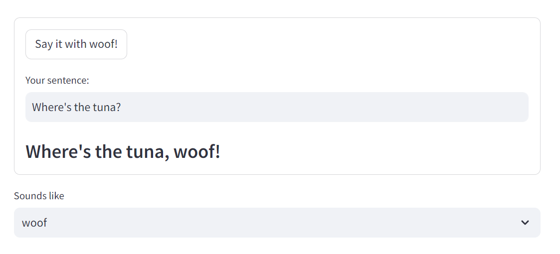 sentence = animal.text_input('Your sentence:', 'Where\'s the tuna?')