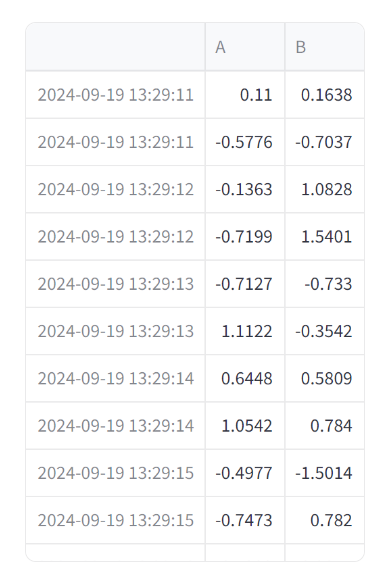 data = pd.DataFrame(sample_values, index=timestamps, columns=["A", "B"])
