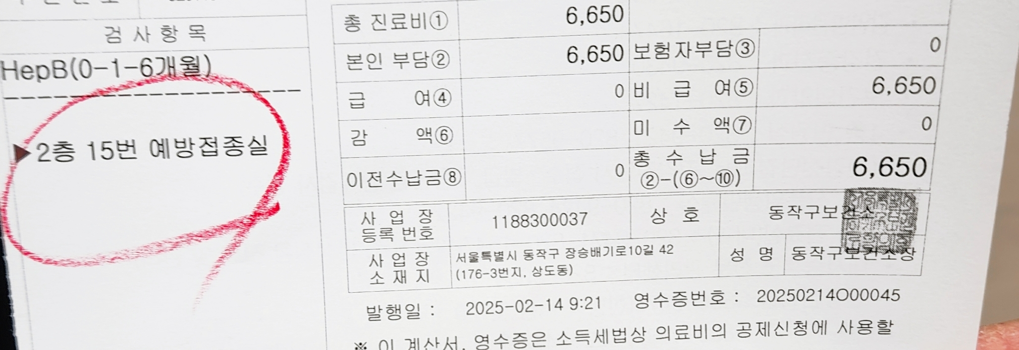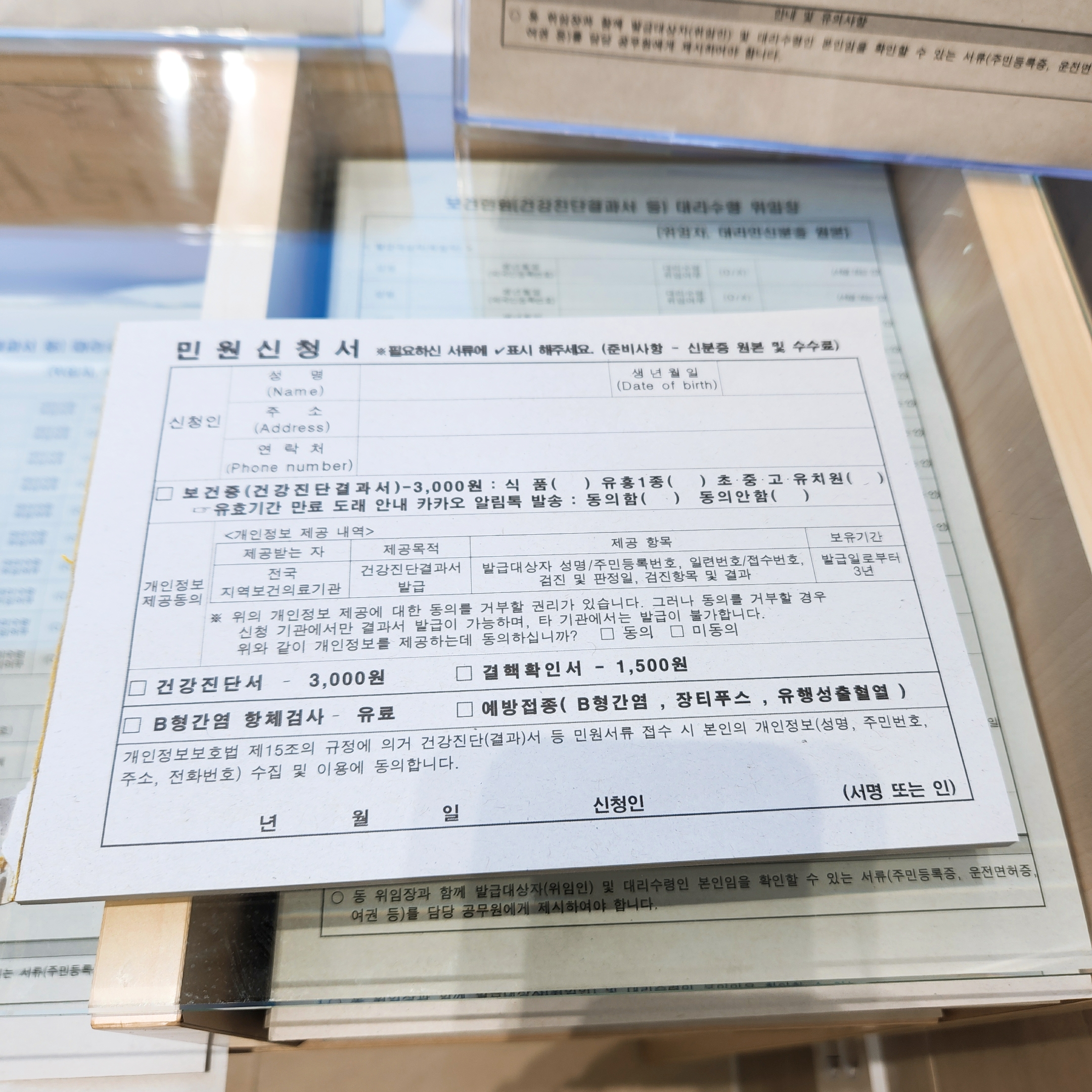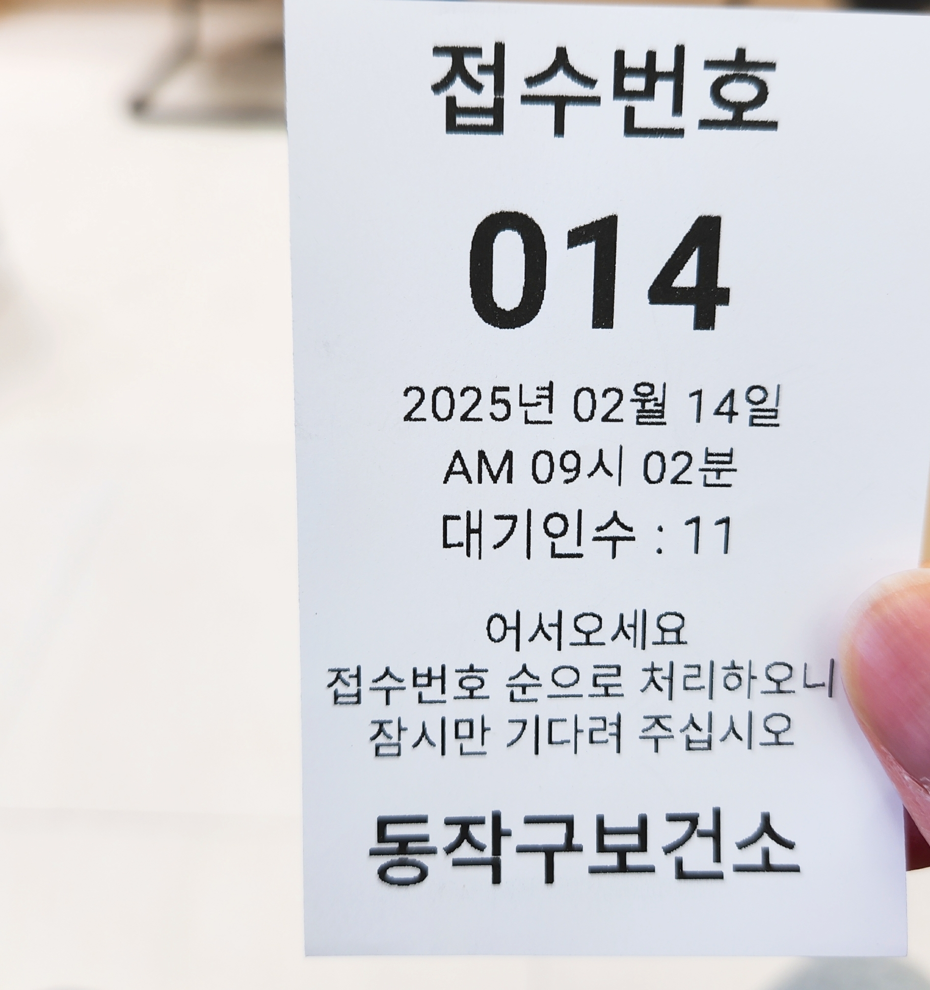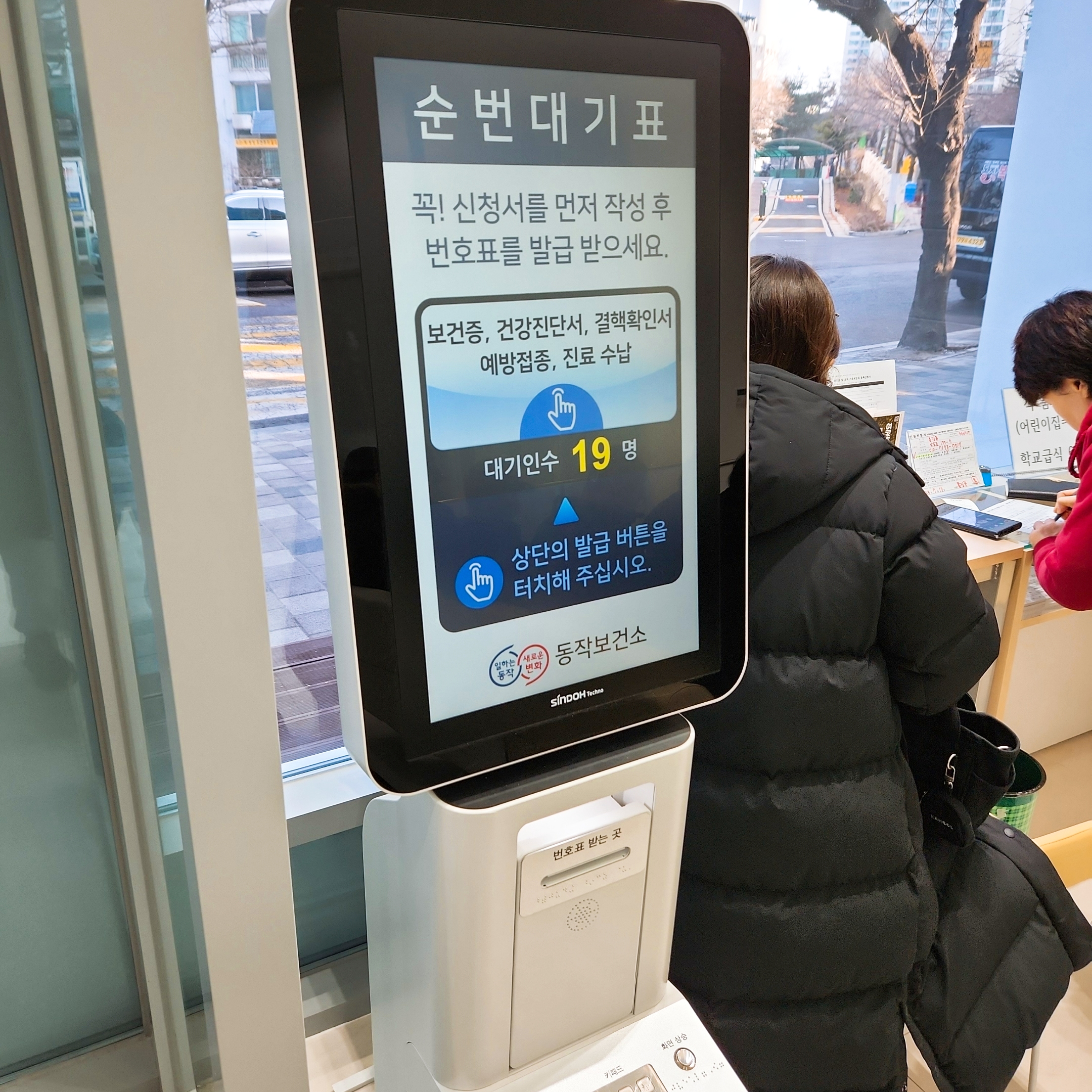 - 대기표 뽑고 민원 신청서 작성(예방접종 체크)