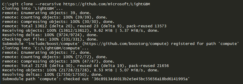 | git clone --recursive https://github.com/microsoft/LightGBM |